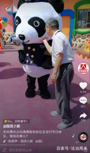 在抖音政务号“国资小新”上,国资委新闻中心主任毛一翔与央企玩偶玩“托脸”。资料图