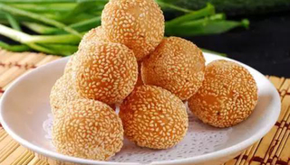 煎堆风味独特,制作考究。色泽金黄,外形浑圆中空,口感芳香酥脆体积膨大滚圆,表皮薄脆清香,而又柔软粘连,馅又香甜可口。有团圆甜蜜的寓意。