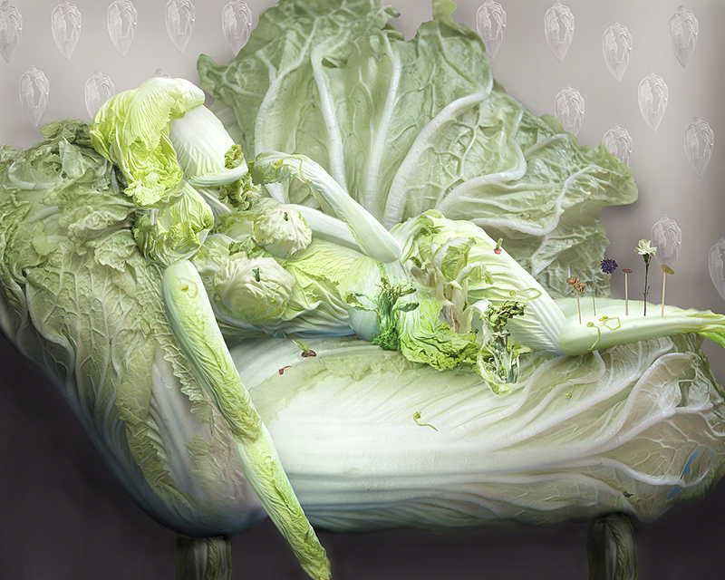 就像灰姑娘被施了魔法、坐上了南瓜车,大白菜们也在桔多淇的镜头里定格成了高颜值女子,并且摆脱了时钟的魔咒。桔多淇这组作品的动人之处就是唤醒了普通白菜们的梦想,并且帮它们实现了。我们大多数人普通的就像一棵白菜、一只土豆,好在我们可以自己行动。
