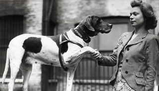 坐在高台后面的英国女主人一脸怀疑地凝视着小女孩。她一边端详着那只小狗,一边将信将疑地伸出手,从小女孩展开的臂弯里接过了它。她把小狗放在近前,一边抚摸它,一边摩挲它的耳后,检查它身上的标记,并试着与自己印象中的样子核对。这时,小狗慵懒地睁开了一只眼,看了看自己在什么地方,好像挤出了一个疲惫的微笑,就又坠入了甜美的梦乡。