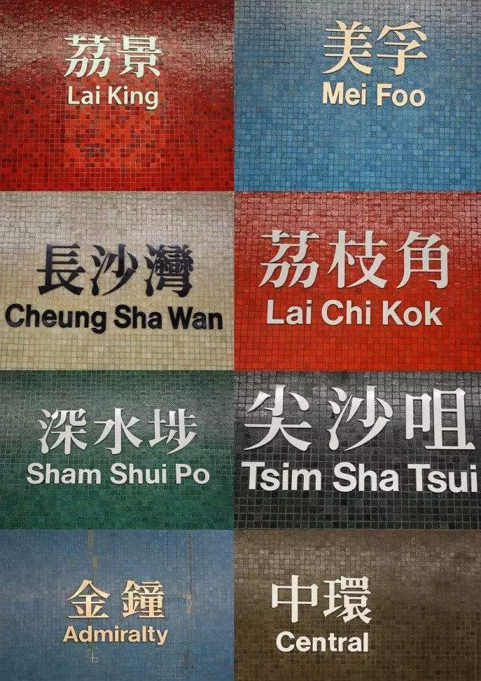 港铁站牌一直都是游客们喜爱,在每天都要进进出出的地铁站,每个站牌都有自己独特的颜色。不少朋友还会特地打卡N个站,拼九宫图呢!
