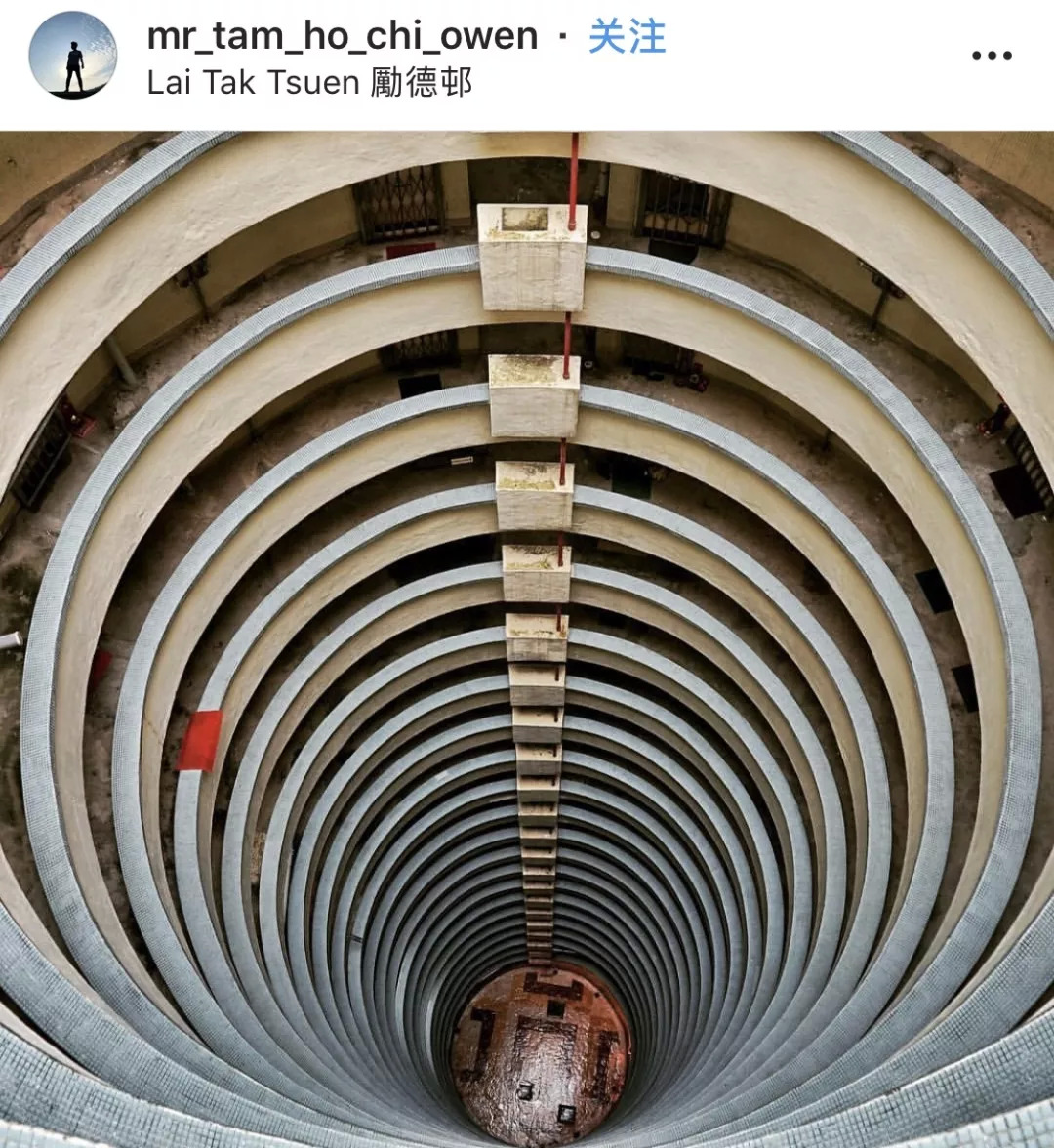 励德邨又是一个有多年历史的住房区,圆柱体的外形,无论从上往下拍,还是从下往上拍,美照信手捏来!