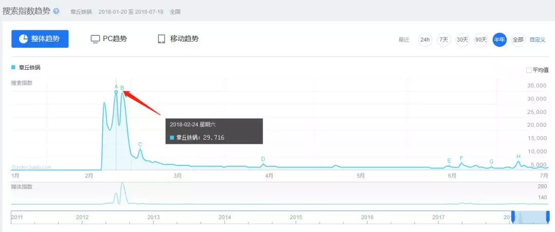 章丘铁锅百度指数(截图来自百度指数官方网站)