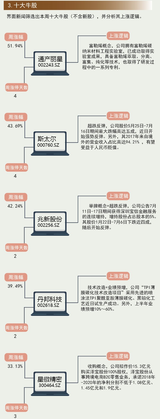 【一周牛股】富勒烯概念股表现强势 通产丽星周涨幅51.94%