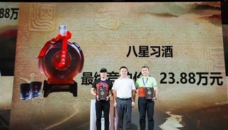据悉,此次活动参与展出的藏酒有7款。其中70年代初的习水大曲专家估价10万元;1993年的双龙习酒估价1万元;1984年老习酒估价5万元;1992年的方品习酒、1987年的飞天老习酒以及2008年习酒典藏珍品3L装坛装酒,专家分别估价为4000元、9000元和2万元。最后一组藏品“八星习酒”鉴赏完毕后,专家估价为10万元。现场嘉宾通过激烈角逐,最终以23.88万元的价格成功交易,创造了本场活动的最高竞价记录。