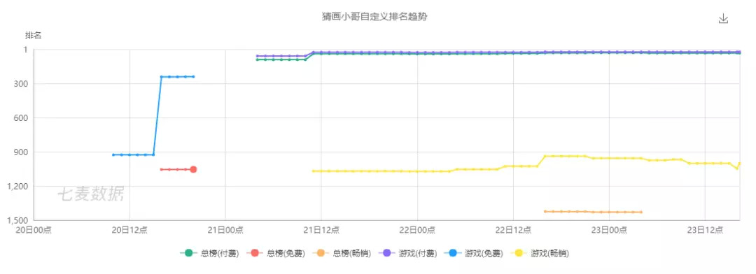 “小哥”4月份的时候还叫《完美视角》,在《猜画小歌》上线之后,于7月19日更名为《猜画小哥》,之前毫无存在感的《完美视角》改名后出现在了榜单里。“小哥”是单机游戏,根据官方放出的应用描述,玩家需要旋转一堆无规则的3D线条,找到完美视角拼出好看的图案。看起来“小哥”和“小歌”的相似性只停留在读音层面。