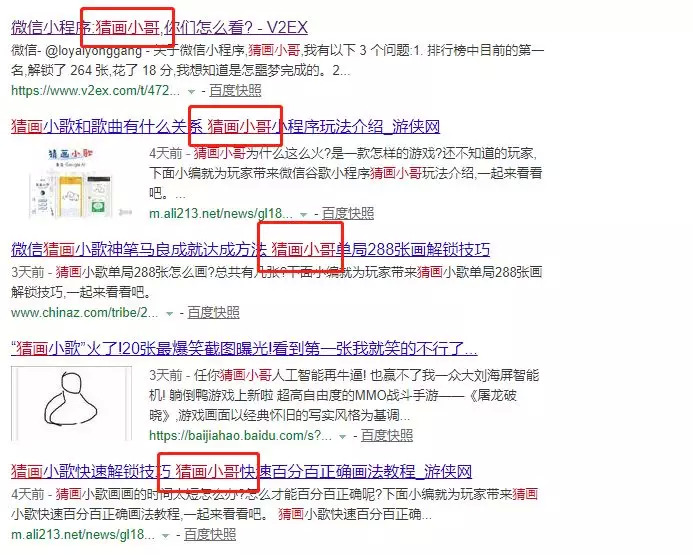多个把《猜画小歌》错打成《猜画小哥》的标题