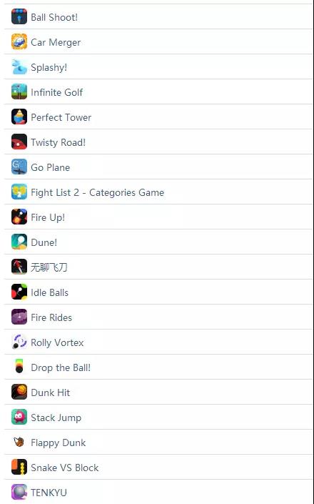 2017年Voodoo在iOS发行产品(不包括已下架产品)