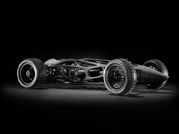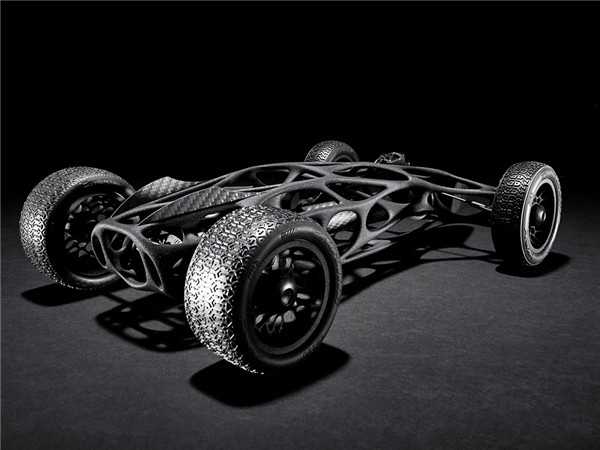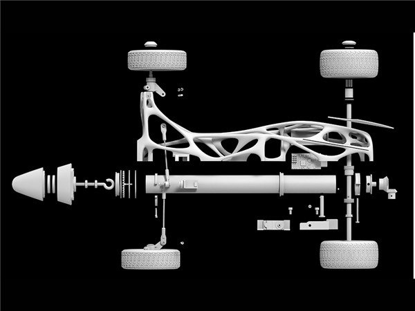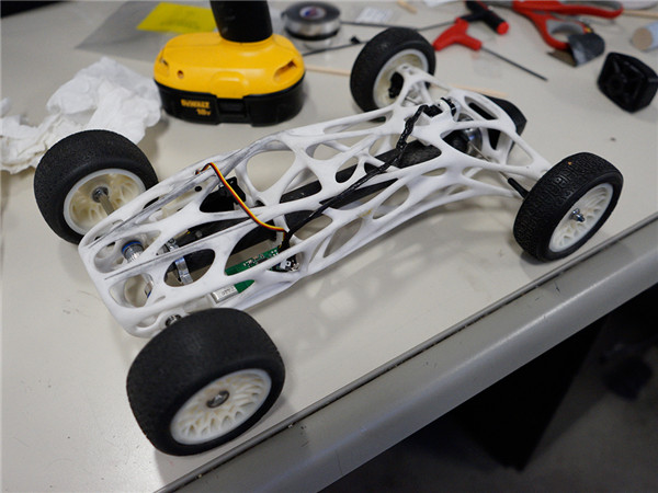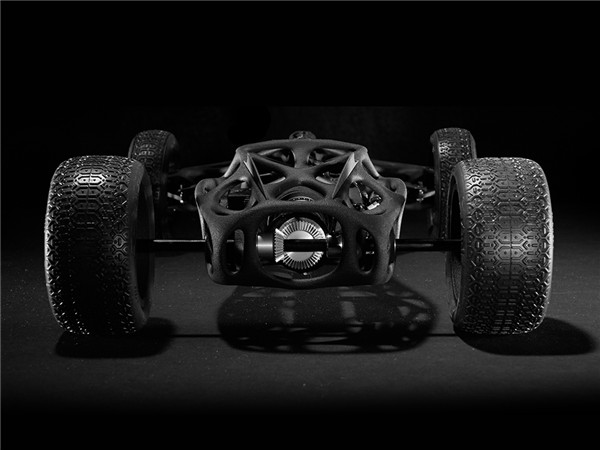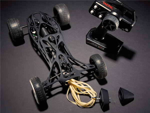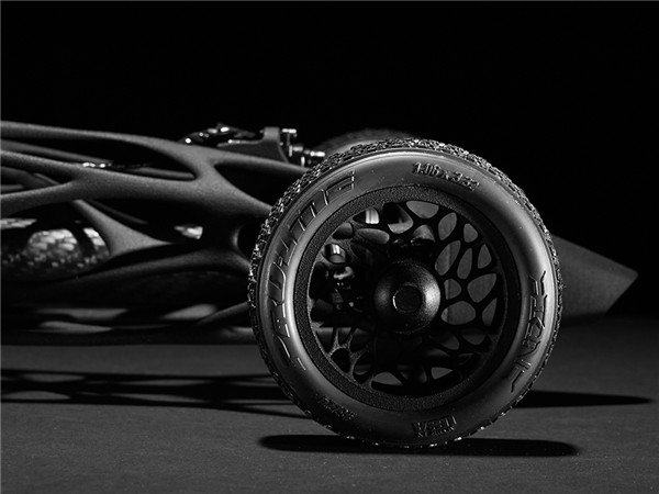 这辆名为“Cirin”的遥控车,以尼龙、碳纤维和铝等材料用3D打印而成。它的灵感来源于上世纪60年代F1赛车的外形和鸟的翅膀骨架结构,外形炫酷,质量轻而坚固,而且几乎没有用到螺丝来加固。