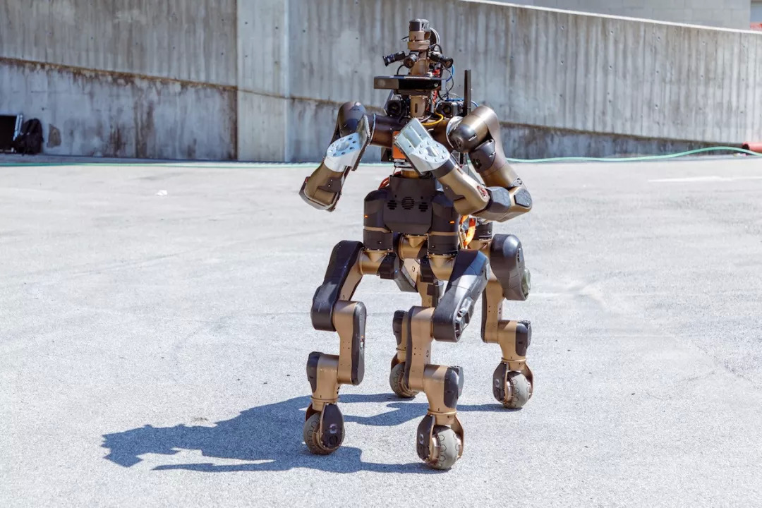 它就是Centauro——一款独特的轮式四足+双臂搜救机器人,由意大利理工学院的研究人员打造。