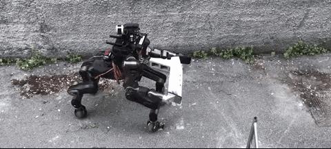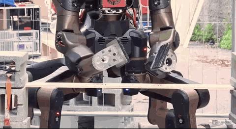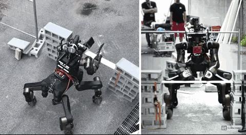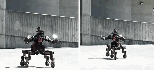 这意味着机器人可以采取多种不同的姿势,包括轮式直立姿势(最适合快速移动)和蹲伏的“蜘蛛”模式,这使它在操作工具时更加稳定。它也可以在瓦砾地面上行走,甚至能爬上楼梯。