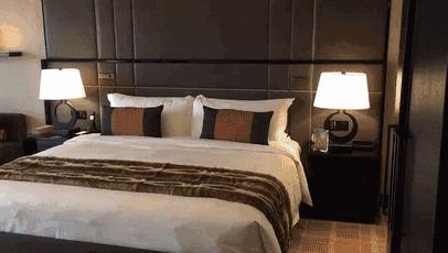 房间其实趋于普通,巨大的落地玻璃,面朝静安寺,视野还算开阔。因为设计师是意大利人所以整体风格有意大利的时尚感与三十年代老上海复古风的结合。不过我有发现几处比较特别的小巧思。