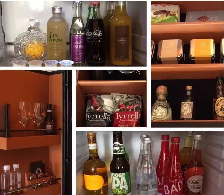 其次就是MINI BAR,一整个柜子的设计非常豪华又不失沉稳,食物和酒都非常丰富,冰箱里塞满了网红饮料,柜子里有各种进口小食,可以说是深得我这个“吃货”的心了。