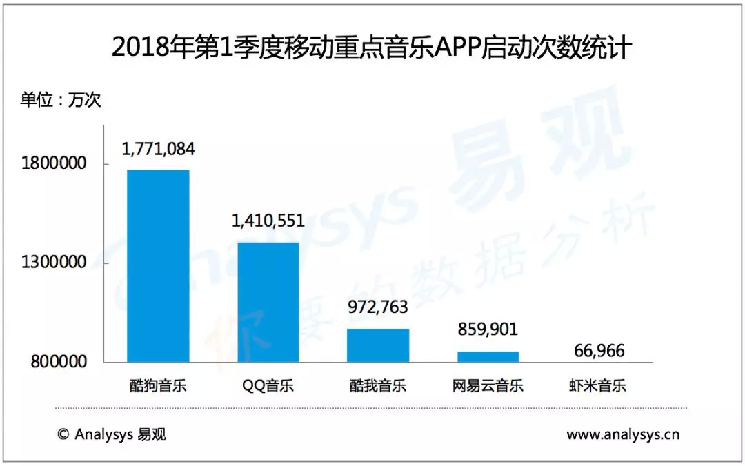 从APP启动次数上看,TME旗下的三家音乐平台同样优势明显,在18年1季度酷狗音乐和QQ音乐继续领跑行业,启动次数均超过100亿次。同属TME旗下的酷我音乐紧随其后排名第三,更多的启动次数意味着腾讯音娱的产品相比市场同类APP具有更多的开屏广告曝光机会,可能为广告主创造更大的价值。注重小众群体的网易云音乐和虾米音乐分别位列第四和第五。