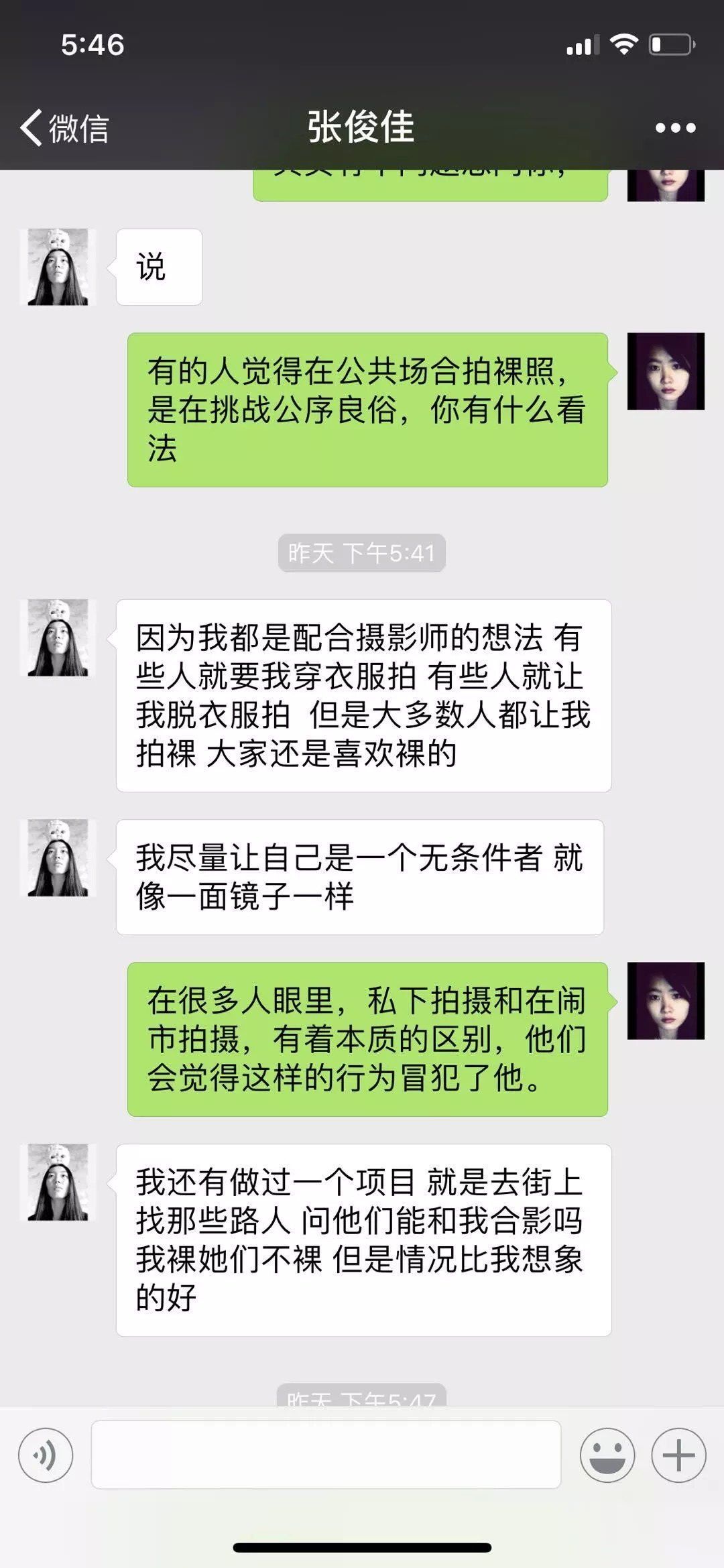也许像张俊佳这样的裸模,是时代的一个产物,正是因为社会文明发展到一定的程度,才会有这样的问题出现,才会产生不一样的矛盾点,进而引起争议,生发出不同的看法,观点,问题才会得到解决,然后社会才会进步。