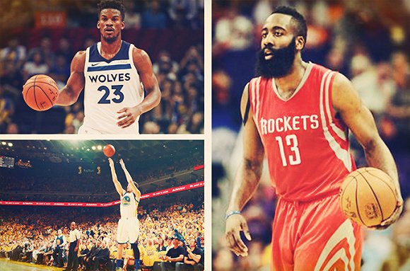 得分后卫,新科常规赛MVP哈登排在第一也是没有什么争议的,一步步从最佳第六人成长为球队的核心领袖,他在进攻端从一位擅长突破的球员到蜕变成为内外进攻无死角的球星,同时在防守端上也是变得更具强悍特性,成长得越来越全面。