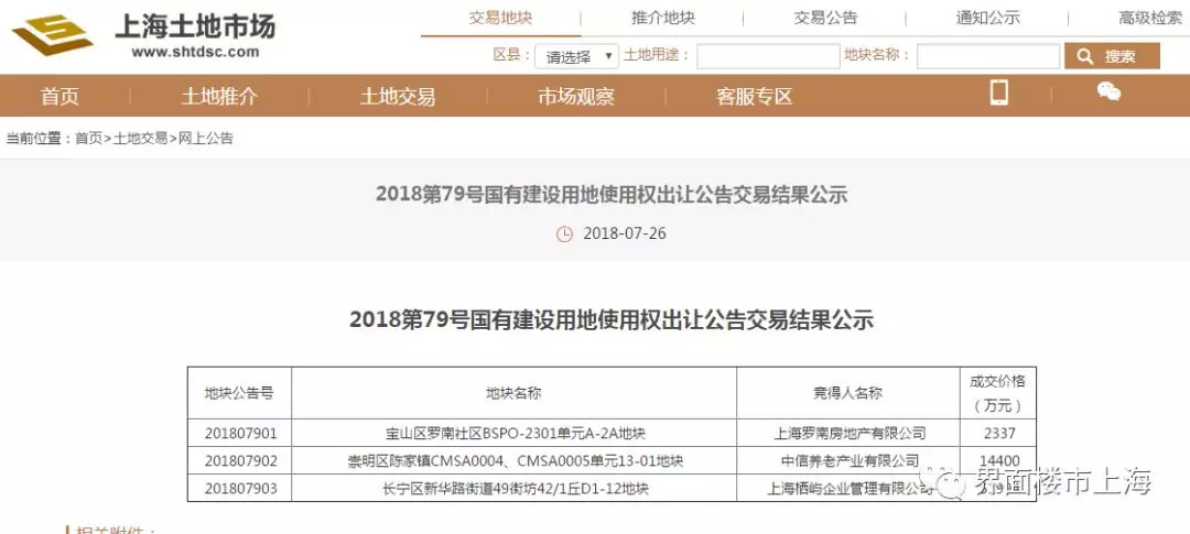 2018年7月26日,上海市土地交易市场举行了3场经营性国有建设用地使用权挂牌截止及现场竞价活动,交易结果如下: