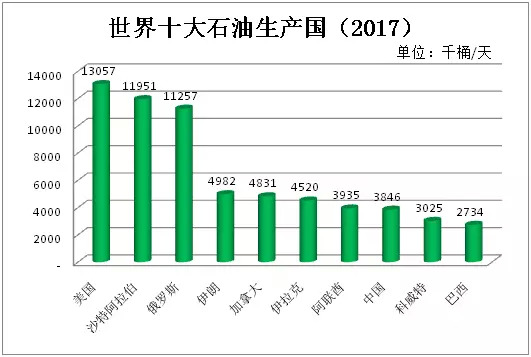 2017年世界石油产量出现轻微增长,达到9265万桶/天,增长了60万桶/天,增速0.7%。