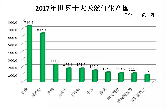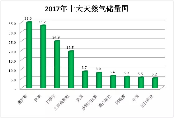 截至2017年底,全球天然气探明储量为193.5万亿立方米,出现轻微上涨。