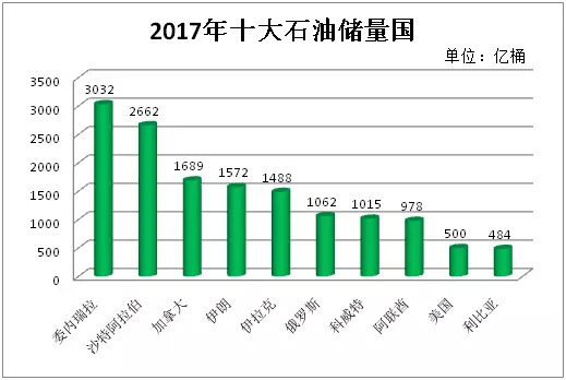 截至2017年底,全世界探明石油储量达到1.6966万亿桶,虽然出现轻微下跌,仍然保持了较高的水平。