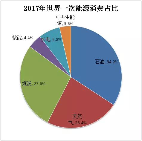2017年,石油在世界一次能源中的消费占比为34%,而在2007年,这一数据为36%,差别并不是特别明显。