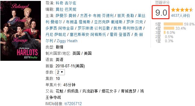 对,没错,《名姝》这部剧讲的就是有关妓女的那些事,并且一讲就是两季共18集的超大容量。对比英剧一贯的短小精悍,这个集数简直令人兴奋。