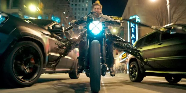 在预告片中,汤老湿骑着机车毒液化身液体网络粘向周围的两辆汽车。这种流体网络似乎无穷无尽,毒液的复制再生能力也很强悍。