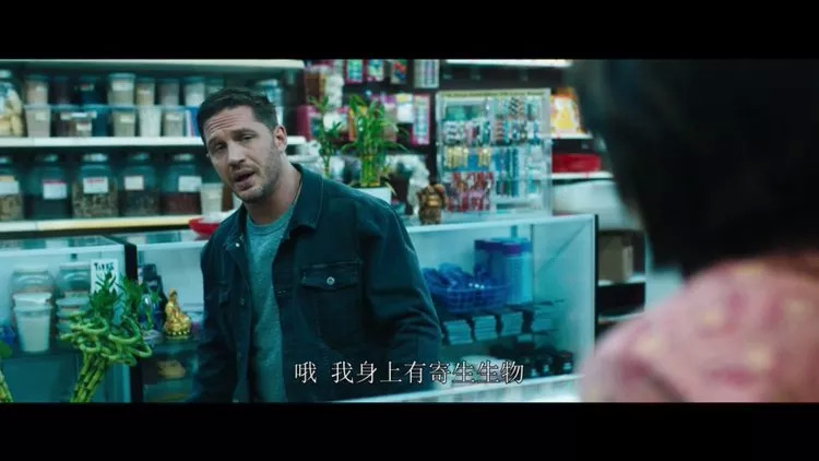 预告片结尾还有一处毒液“打嘴炮”彩蛋。毒液在商店中抓住一中年男子,威胁要把他大卸八块,在旁的女店主吓得魂飞魄散,毒液还不忘逗趣地安慰她:“不好意思,我只是身体里有寄生虫罢了。”由凶转萌瞬间完成,毒液就此立住“嘴炮”人设。