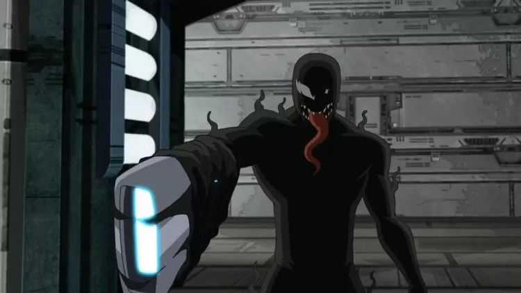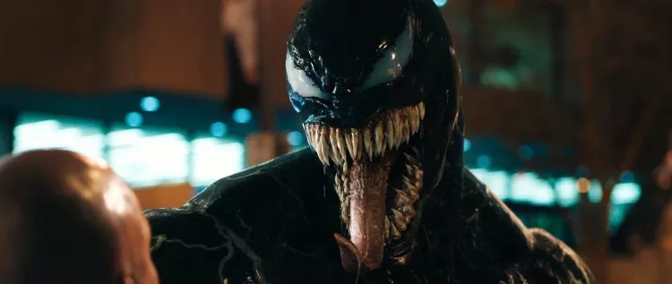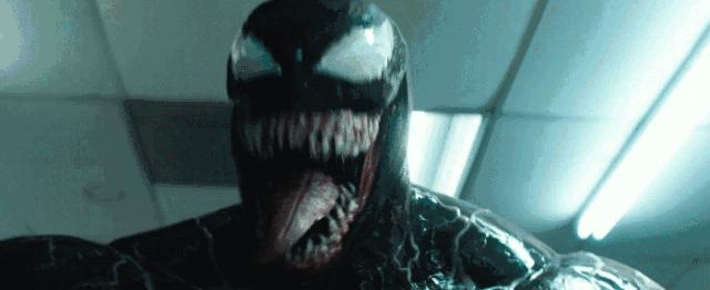 毒液是一种液态寄生生物,当他展现力量从宿主艾迪 布洛克的身体中钻出的时候,纵横交错的根根獠牙和和黏腻舌头,不愧是暗黑系的R级片。