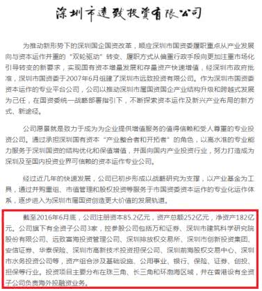公开资料显示,远致投资成立于2007年6月,是深圳市国资委全资控股的资本运作专业平台公司,旗下拥有全资子公司3家及若干控股公司。远致投资还参控股多家A股上市公司,其是建科院(300675.SZ)控股股东,持股42.86%;持有深振业A(000006.SZ)12.07%股份、中洲控股(000042.SZ)7.24%股份及国投资本(600061.SH)5.98%股份等。