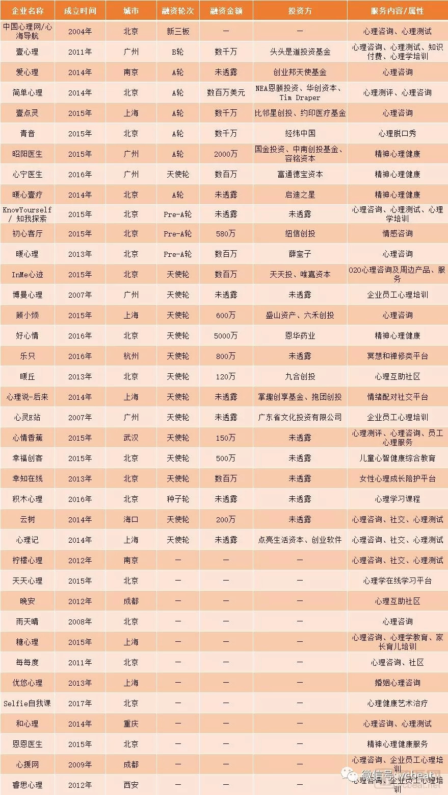 垂直心理类平台企业相关信息(数据来源:公开检索)