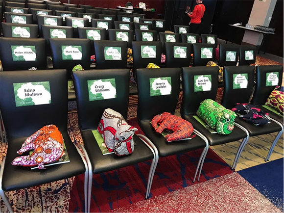 在颁奖现场,每一位嘉宾的座位上都摆着一只可爱的非洲野生动物公仔。它们出自那些不幸牺牲的巡护员的遗孀。为了让英雄家属有更多收入,巡护员遗孀被组织起来从事手工业制作。国际巡护员联盟主席、绿色前线基金会创始人Sean Willmore表示,马云今天的善举让他想起一位巡护员遗孀曾经说过的话。“她说,你们给的不是钱,而是黑暗中的光明。我们的巡护员需要装备,需要培训,更需要被全世界尊敬和认可。这是今天这场活动最大的意义。”