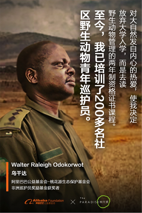 2017年7月,在马云提议下,阿里巴巴公益基金会和桃花源生态保护基金会共同设立了“非洲保护区巡护员奖励基金”,以支持非洲动物保护工作。基金会公布了首批50名获奖巡护员。