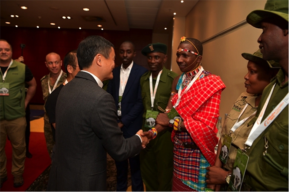 Alfred已经跟盗猎者斗争了14年,这是他第一次听说有人给巡护员颁奖。他回忆起去年7月,马云访问肯尼亚时去了他驻守的马塞马拉草原。那个时候,他特别希望马云能给他们鼓鼓劲儿。现在他的愿望实现了。“我想和马云说,你做了一件非常非常好的事情,不是因为你给的奖金,而是你的鼓励和认可让我们这些巡护员更加努力工作。这是对环保事业真正的贡献。”