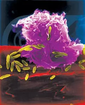 当白细胞的钩子准备来钩我们的时候,荚膜就像是一层“迷魂散”,让钩子看不清也捉不到。荚膜越厚,“迷魂散”的威力越大。哈哈,没想到吧,白细胞,我们居然躲避了你们的巡逻,成功地混进去。但要想躲避白细胞的攻击,还是需要很费一番周折的。