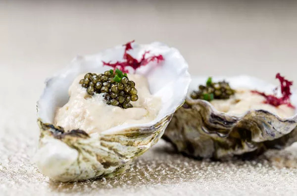 既然是蚝中之王,那么除了品尝它原汁原味的刺激口感之外,更加奢华的吃法则是每颗生蚝配上一勺顶级伊朗鱼子酱。