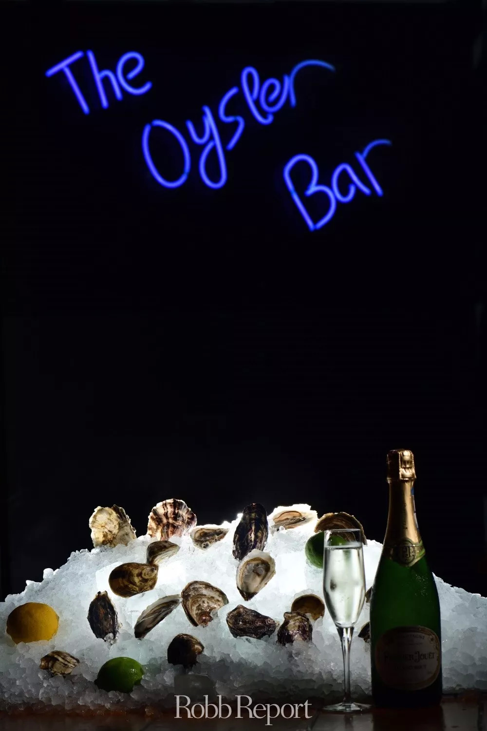 每晚宾客们都能享受到现开生蚝,并佐以柠檬汁、鸡尾酒汁以及干葱红酒醋等酱料。餐厅选用了来自纳米比亚西海岸中部地区的鲸湾港生蚝,鲸湾港出产的生蚝肉质肥美,饱含矿物质。