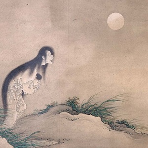 其中最出名的女鬼当属“产女”了,她是个因分娩而死的女人的灵魂变成的妖怪。关于这个产女,有一个经典的传说:一个女人在店里买糖果,一言不发,结账的时候她往罐子里扔了一篇干枯的叶子。店主一头雾水,便尾随她回到了家——一个墓地。这个女人走到一小块土地上,突然消失了,这时候地底下传来了哭声。店主把土刨开,发现了这个女人的尸体,怀中紧紧抱着一个活着的婴儿,她到街上游荡就是为了给孩子找吃的。公元1000年左右的《源氏物语》是一本家喻户晓的日本长篇小说,里面就收录了另一类鬼故事:生灵(ikiryō),也就是活着的人出窍的灵魂,在世间游荡。生灵可能是活着的人怨灵作祟,在愤怒或者嫉妒之心的逼迫下离开身体,附到另一个人的身上,用以折磨敌人或者寻求血腥的复仇。