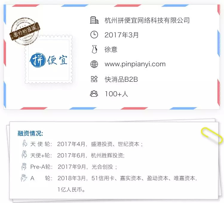 今年3月,快消品B2B平台拼便宜获得51信用卡、嘉实投资领投1亿元A轮融资,这是其成立一年多来的第四轮融资,发展迅速。