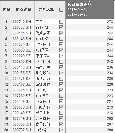 值得关注的是,在2017年全年,苏美达(600710.SH)、SST前峰(600733.SH)、信威集团(600485.SH)、沙钢股份(002075.SZ),4家上市公司的停牌天数竟长达278天、244天、244天和244天,近乎一年的时间都在停牌了。