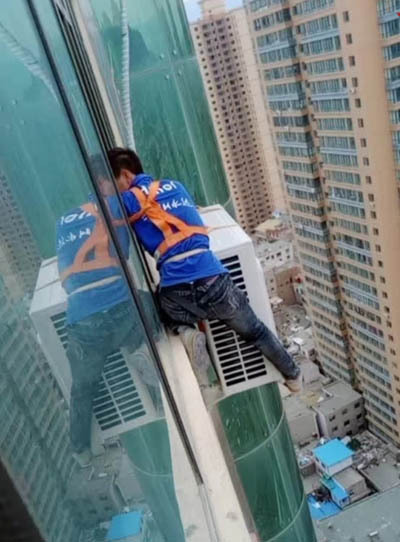 空调的安装、维修,既是一项体力活,还是一项技术活,一般人还真干不了。远的不说,几十公斤重的室外机,在20、30层高楼,要通过窗口悬挂在外墙上,还要打洞安装支架。有的高层建筑设计很“奇葩”,室外机平台一般人人进不去,只能让身材苗条的安装工钻进去,上螺钉、测压力、接电源。这些是体力的考验,更是专业技术的考验。毕竟空调是“三分质量、七分安装”,安装不好就会直接影响用户的体验。