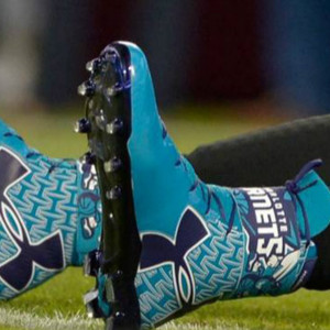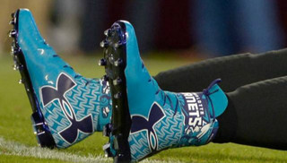 6.UA的橄榄球装备越来越专业、全面。这是卡罗莱纳黑豹队四分卫Cam Newton的钉鞋。