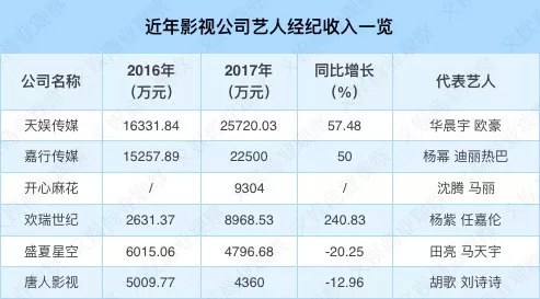 天娱传媒2017年经纪收入2.57亿元,嘉行传媒2.2亿元