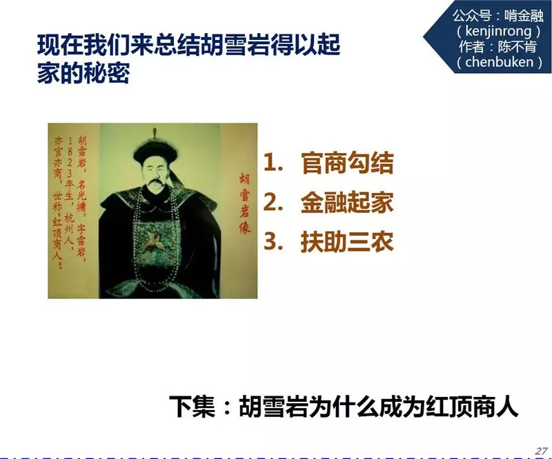 大金融家胡雪岩起家的秘密说白了其实就在于官商勾结、经营钱庄、扶助三农这三点。