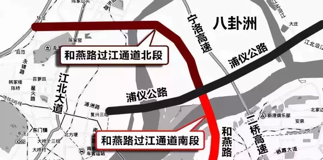 和燕路过江通道以浦仪公路八卦洲互通立交作为分界,按照“全段研究、分段实施”原则开展了前期研究工作,全段路线方案已经整体开展了研究,由于北段路线方案在江北大厂地区涉及一些沿江的大型厂区,将根据厂区搬迁情况继续开展后续研究,适时启动建设。