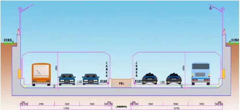 敞开段隧道结构横断面图