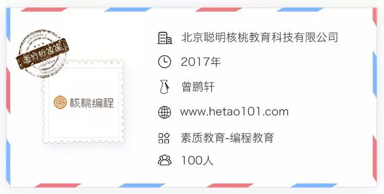 回国后的曾鹏轩继续选择创业,但由于彼时国内少儿编程风口未到,因此直到去年年中,他才决定着手该创业项目。核桃编程另一合伙人王宇航,曾获“ROBOCUP”机器人世界杯冠军,同时对儿童教育兴趣浓厚且有所积累。