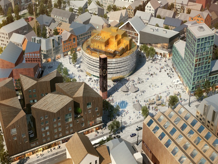 在靠近北极圈的瑞典最北部,有一个叫做基律纳的小镇。2014年3月,这个小镇宣布将用20到25年的时间把镇上超过3000户居民以及所有的建筑东移3千米。整整一年的时间过去了,基律纳又传来了新消息:围绕镇中心广场建设的社区模块已由斯德哥尔摩建筑设计工作室Kjellander + Sjöberg完成设计,即将开建。
