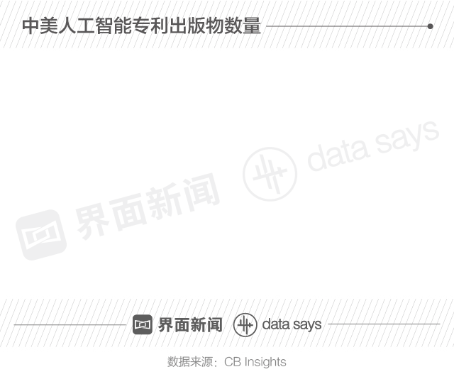 在研究专利方面,CB Insights数据显示,2017年中国人工智能专利出版物数是美国的近五倍。