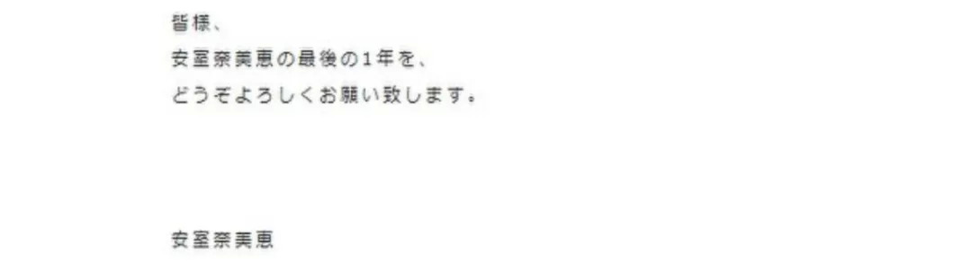 “各位,安室奈美惠的最后1年,请多指教。”